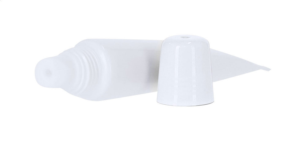 Baume à lèvres vanille en tube plastique, avec protection SPF15.