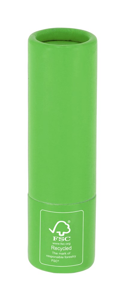 Baume à lèvres vanille dans un support en papier recyclé, avec protection SPF15.