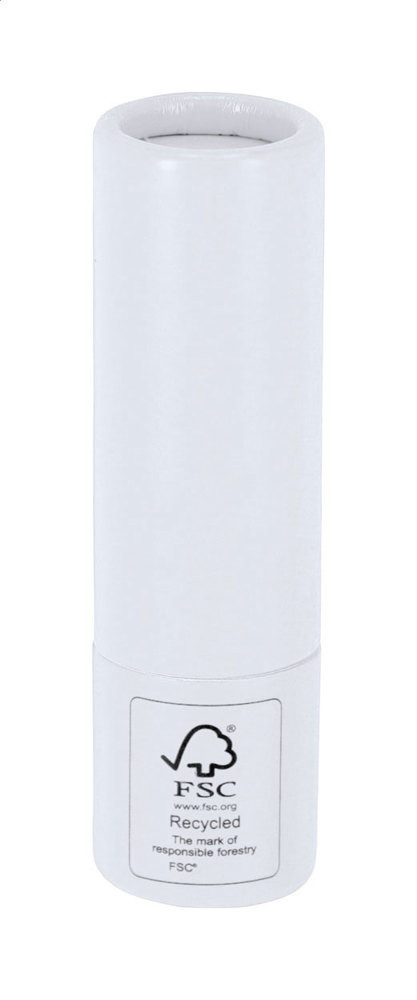 Baume à lèvres vanille dans un support en papier recyclé, avec protection SPF15.