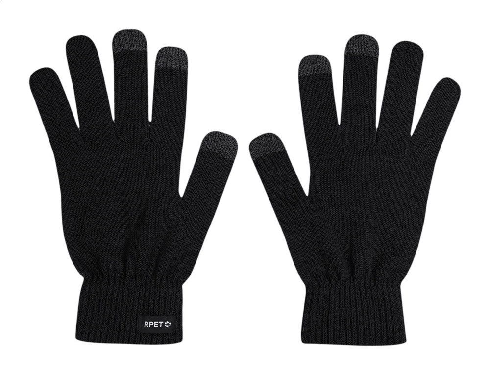 Gants tactiles en polyester RPET avec revêtement spécial sur 3 doigts. En taille unique pour adultes.