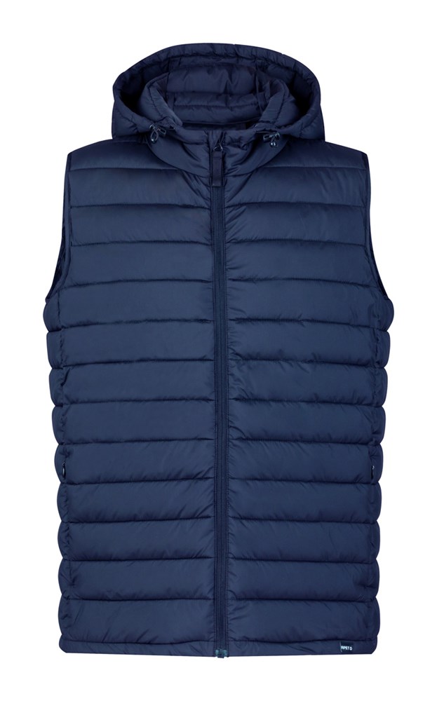 Bodywarmer zippé coupe-vent et déperlant avec poches latérales zippées et capuche réglable. Avec pochette en polyester RPET. 100% polyester RPET avec labélisé RPET.