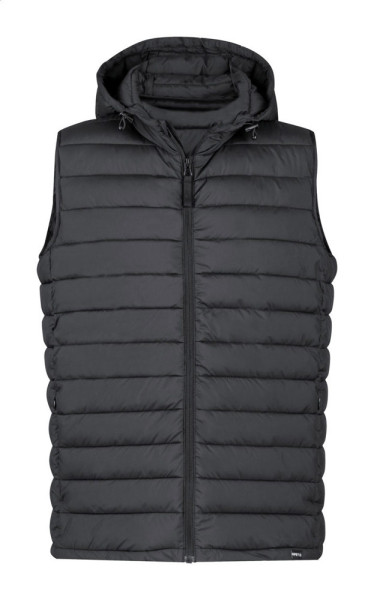 Bodywarmer zippé coupe-vent et déperlant avec poches latérales zippées et capuche réglable. Avec pochette en polyester RPET. 100% polyester RPET avec labélisé RPET.