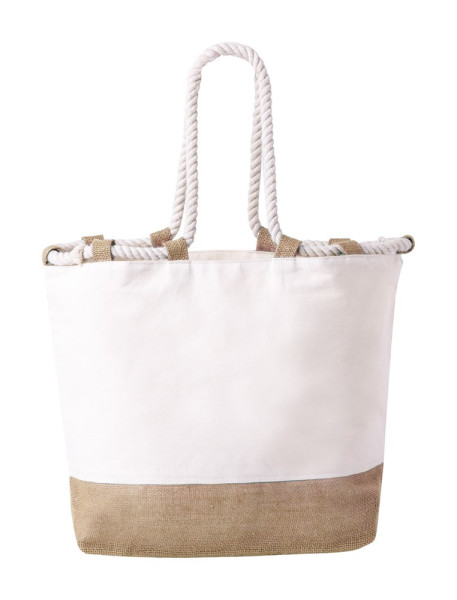 Sac de plage en jute et coton bicolore avec anses en cordon tressé, 280 g/m².