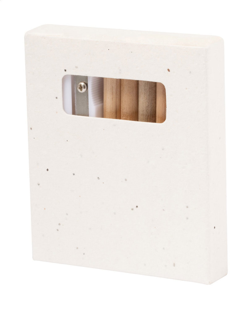 Set de coloriage dans une boîte en papier à graines. Comprend 6 crayons de couleur en bois, un taille-crayon et un livre de coloriage de 20 feuilles. La boîte en papier à graines contient des graines de pétunia de couleurs assorties, qui peuvent être plantées après utilisation.