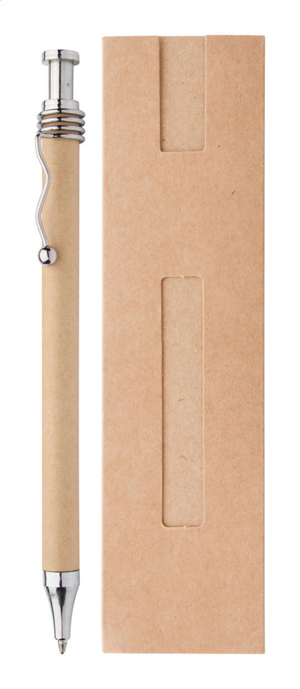 Stylo bille dans un étui en carton recyclé. Encre bleue.