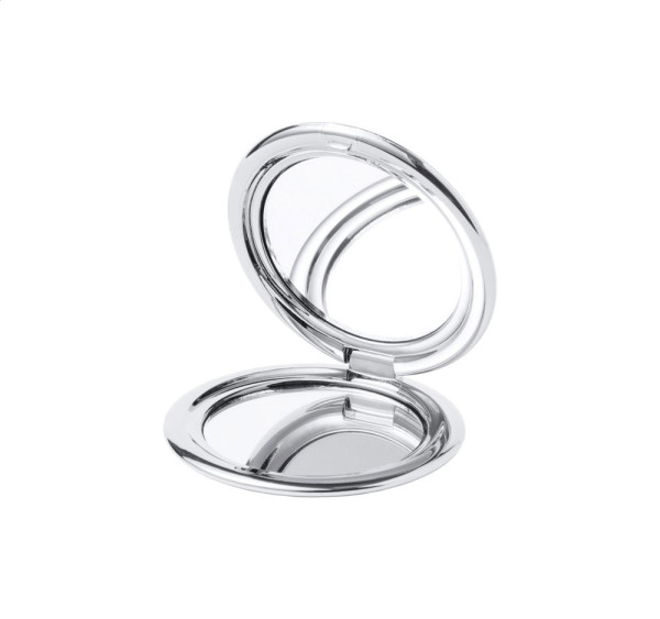 Miroir de poche recouvert de plastique ABS avec finition métallique. Avec côtés normaux et grossissants.