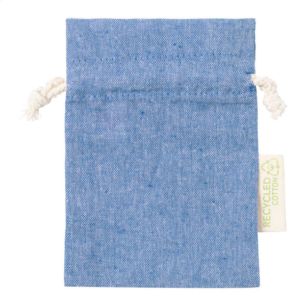 Sac cadeau en coton recyclé avec fermeture à cordon. Avec étiquette Coton recyclé. 100% coton recyclé, 120 g/m².