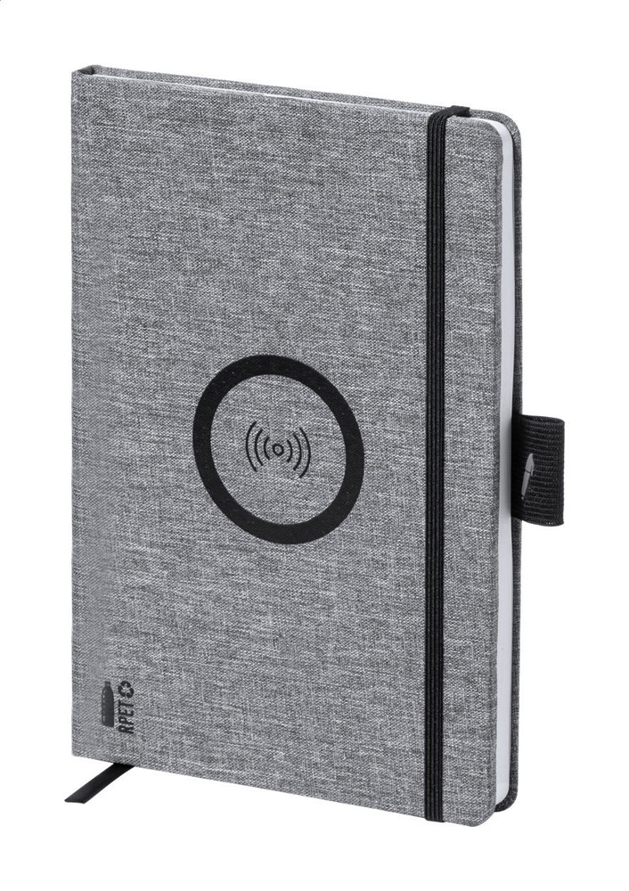Bloc-notes recouvert de polyester RPET avec chargeur rapide sans fil intégré (10 W) et 80...plus