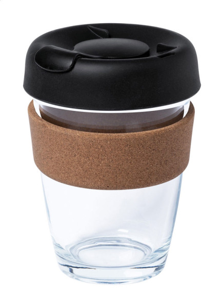 Mug de voyage en verre borosilicaté à simple paroi avec grip en liège naturel et couvercle en...plus