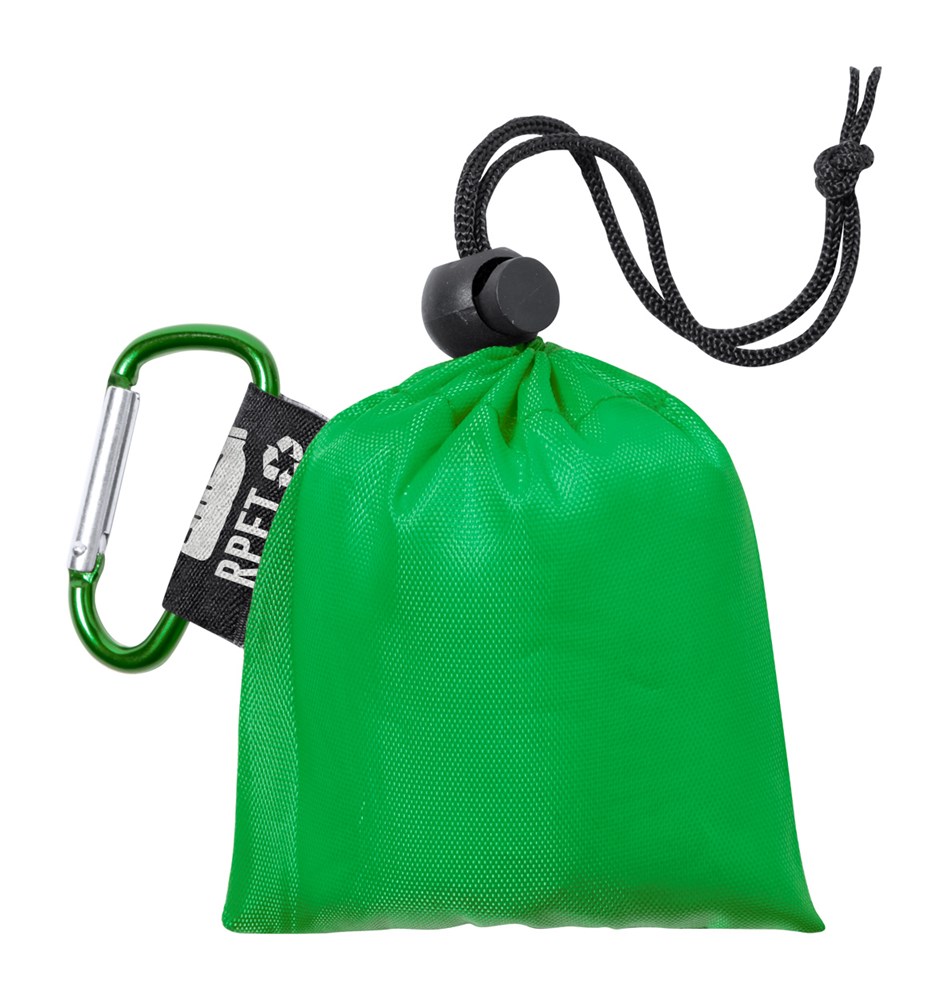 Poncho LDPE transparent en taille unique pour adultes. Dans une pochette de transport en polyester RPET, labélisé RPET et mousqueton en aluminium.