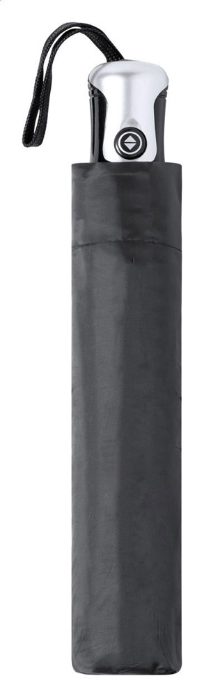 Parapluie pliant résistant au vent entièrement automatique (ouvert / fermé) avec 8 panneaux. Avec tige en métal, cadre en métal / fibre de verre et pochette de couleur assortie et poignée en plastique. Polyester 190T.