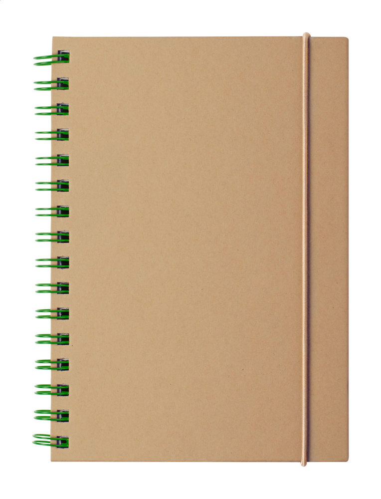 Bloc-notes à spirales recouvert de carton recyclé et élastique caoutchouc avec 80 pages lignées,...plus