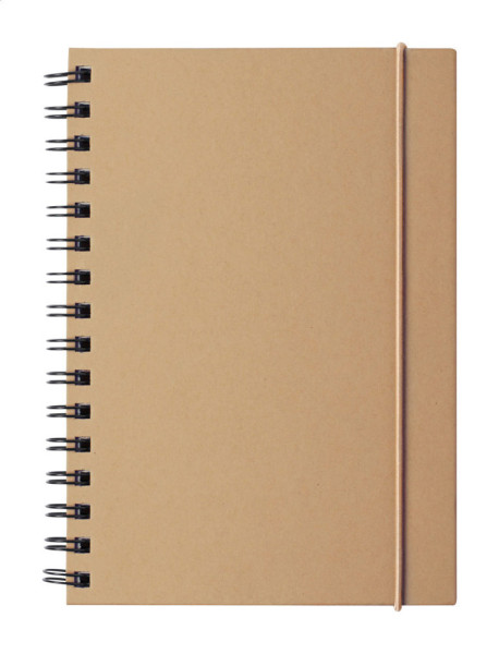 Bloc-notes à spirales recouvert de carton recyclé et élastique caoutchouc avec 80 pages lignées, format A5.