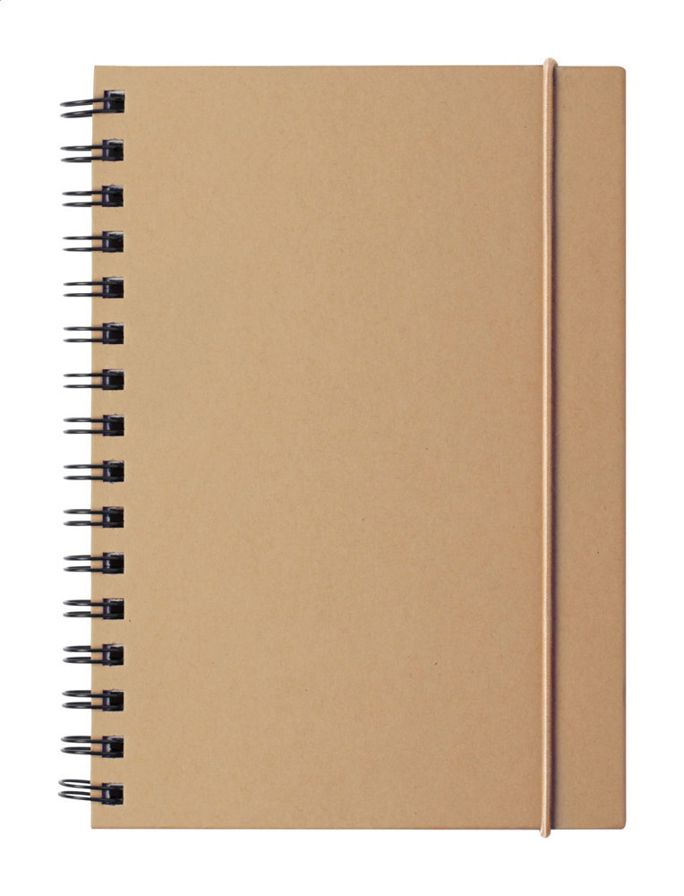Bloc-notes à spirales recouvert de carton recyclé et élastique caoutchouc avec 80 pages lignées,...plus