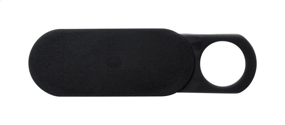 Cache webcam en plastique avec couvercle coulissant et dos adhésif.