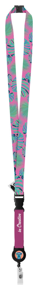 Tour de cou en RPET avec porte-badge amovible et système anti-étranglement. Impression en sublimation sur les deux côtés. Quantité minimum : 100 pièces.