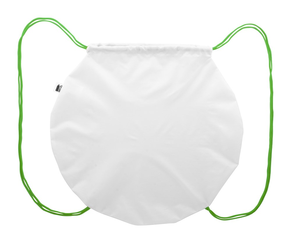 Sac piscine en forme de boule sur mesure avec cordelettes colorées, polyester RPET 190T. Impression en sublimation sur toute la surface et labélisé RPET. Quantité minimale : 25 pièces.
