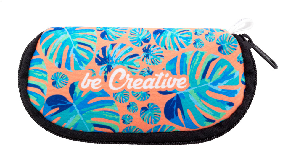 Étui à lunettes de soleil en néoprène RPET avec compartiment zippé. Impression en sublimation sur toute la surface et labélisé RPET. Le prix comprend l'impression en sublimation. Quantité minimale : 50 pièces.