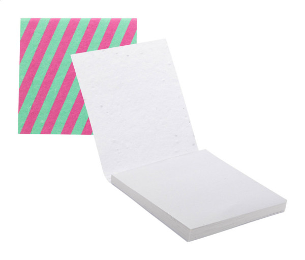 Bloc-notes recouvert de papier ensemencé sur mesure. Comprend 50 feuilles de notes autocollantes en papier recyclé (75×75 mm). Le prix comprend l'impression en quadri sur la couverture. Quantité minimale : 100 pièces. Avec un assortiment de graines de fleurs sauvages.