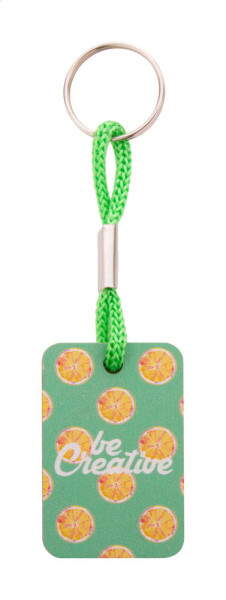Porte-clés rectangulaire en contreplaqué bouleau avec cordon en polyester coloré et impression en couleur. Le prix comprend l'impression UV LED sur un côté. Quantité minimale : 200 pièces.