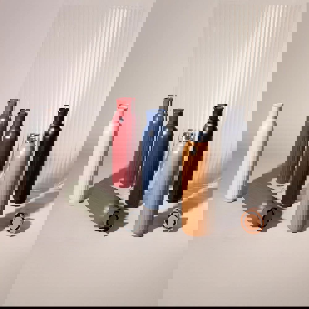 Sagaform Tekla Push allie design scandinave et fonctionnalité. Acier recyclé avec isolation sous vide et revêtement cuivre. Garde boissons chaudes 12h ou froides 24h sans condensation. Bouchon à pression sportif et étanche. Revêtement poudre, lavable lave-vaisselle, prêt à emporter.