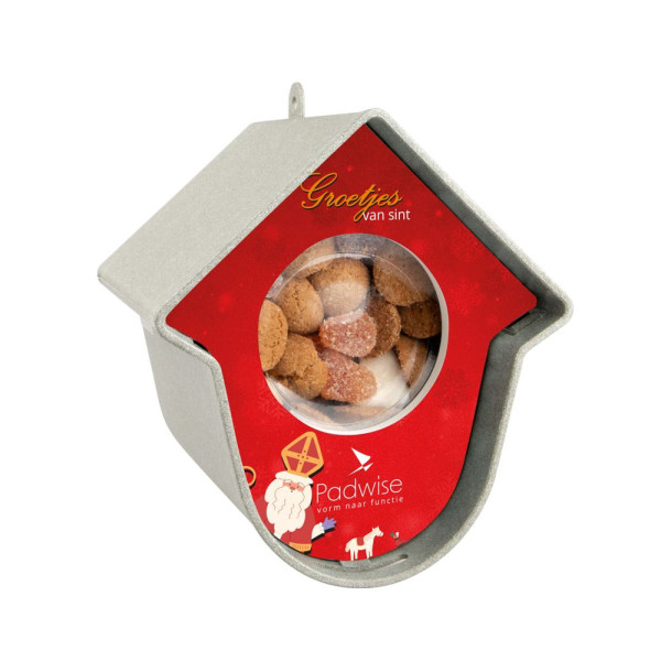 Strooigoedhuisje Evie gemaakt van gerecycled materiaal, gevuld met ca. 140 gram Strooigoed....plus