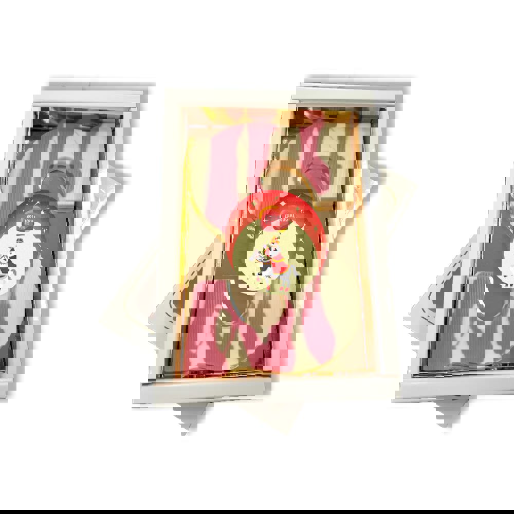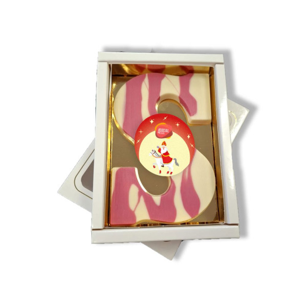 Roze/wit crème letter van ca. 150 gram in een wit doosje, voorzien van een full colour sticker op...plus