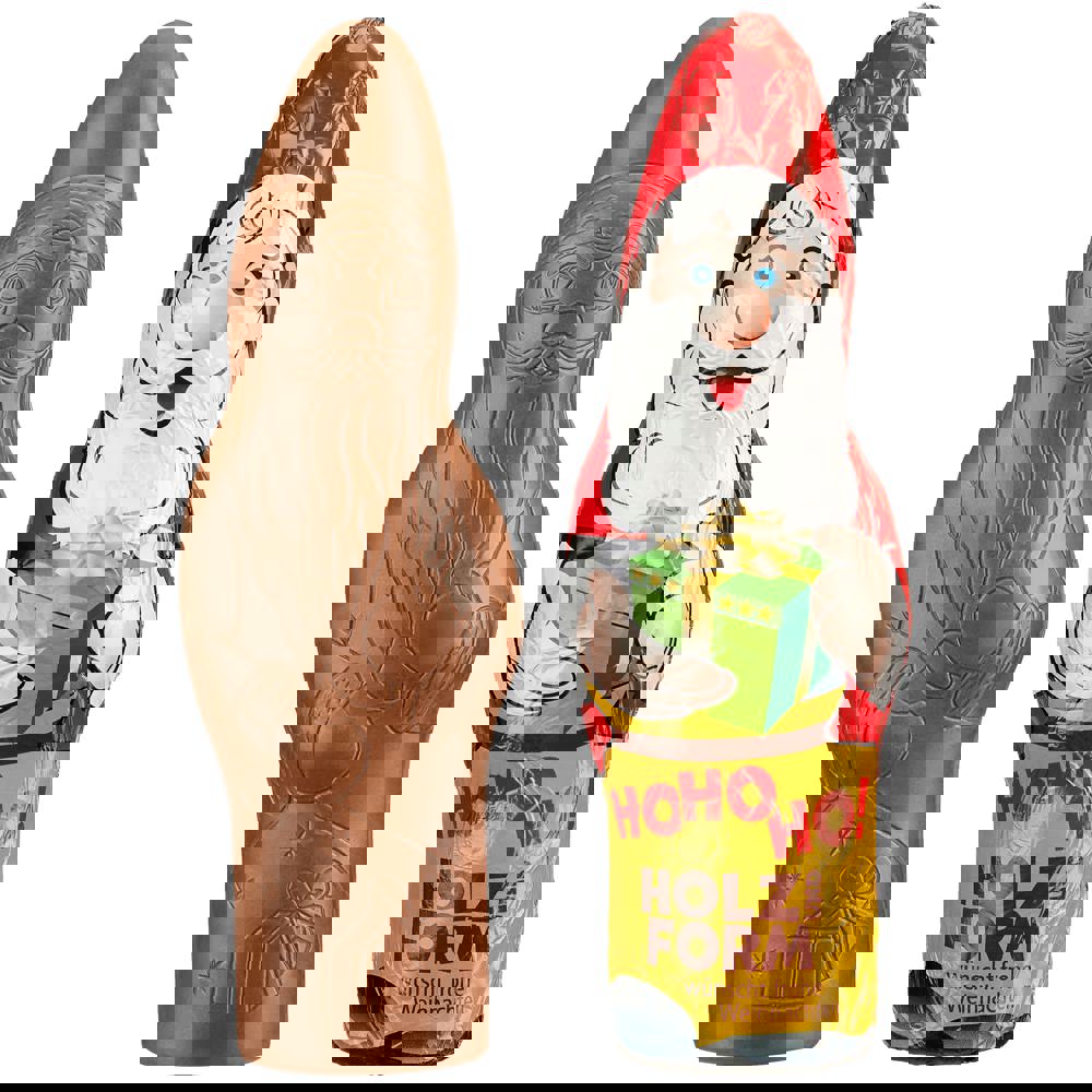 Vegan Maxi melkchocolade kerstman van ca. 50 gram in aluminiumfolie folie, voorzien van een...plus
