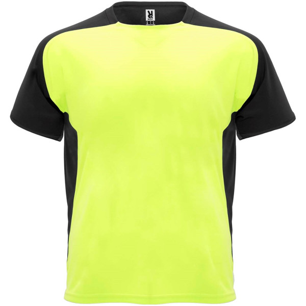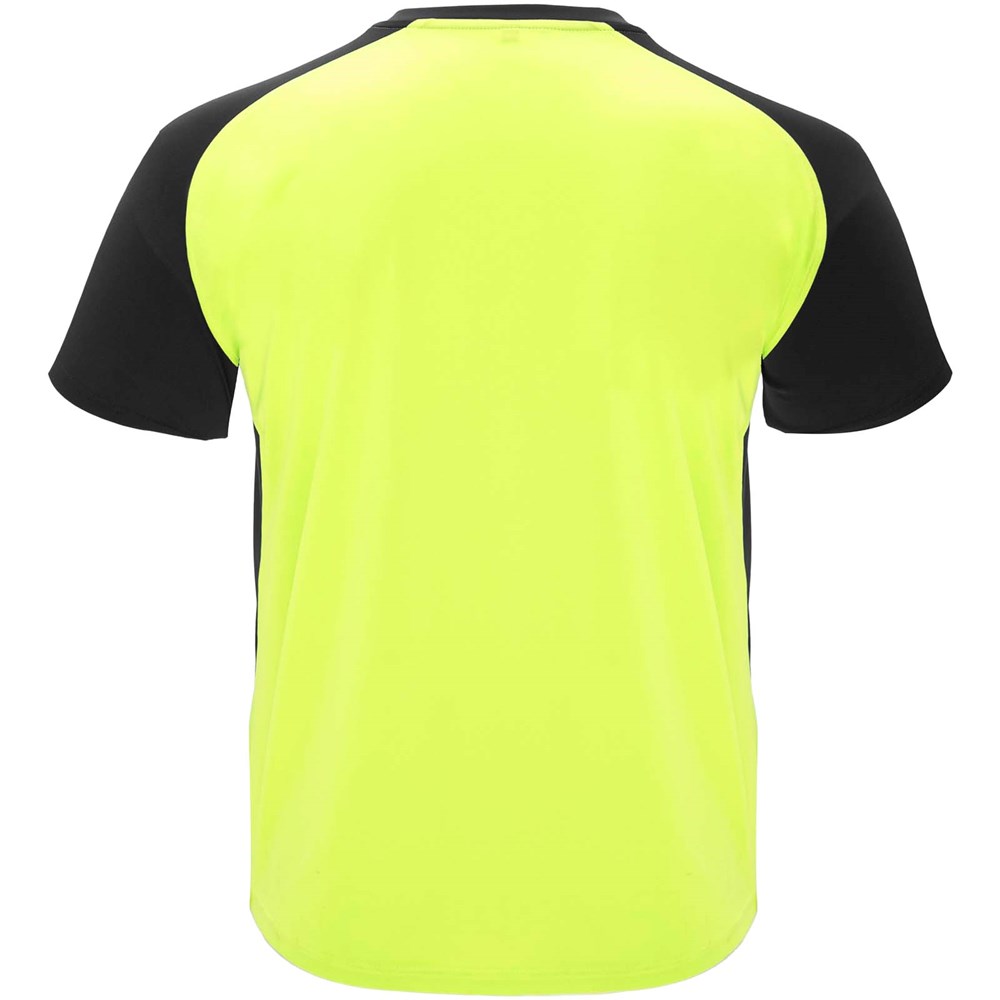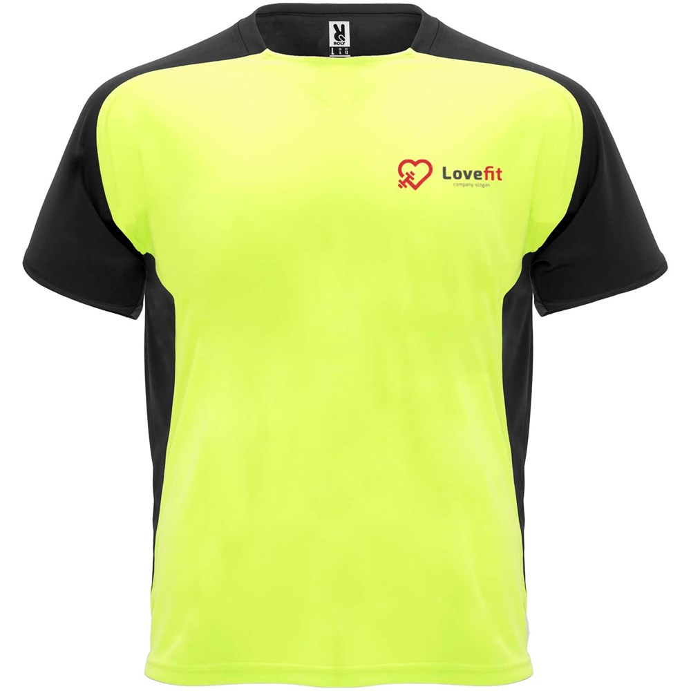 Tissu technique et respirant. Col ras-du-cou avec surpiqûres assorties. Manches raglan et panneaux latéraux contrastés. Étiquette détachable.