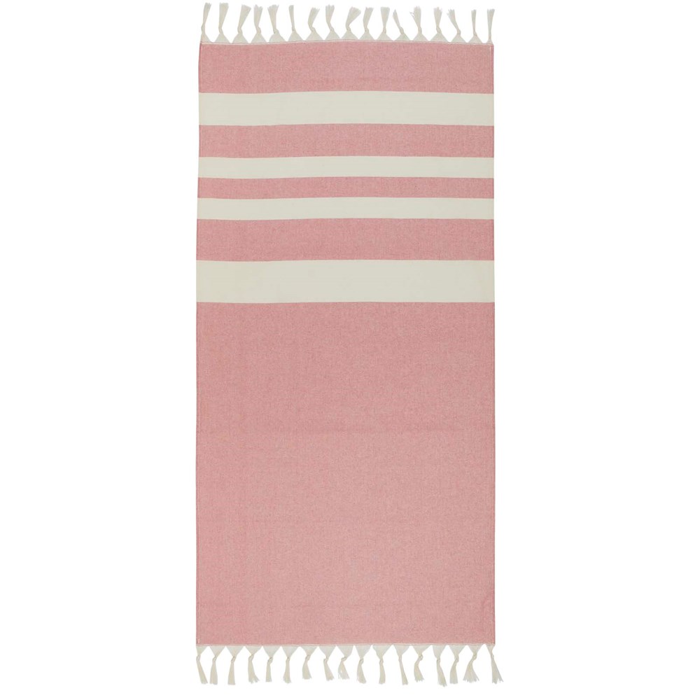 La serviette de hammam Anders offre un confort luxueux et des dimensions généreuses (147 x 75,5 cm), garantissant une couverture suffisante, que vous vous prélassiez au bord de la piscine ou que vous profitiez d'une journée à la plage. La serviette est ornée d'élégants pompons aux deux extrémités. Elle est composée de 30 % de coton, 35 % de coton recyclé certifié GRS et 35 % de polyester recyclé certifié GRS, 180 g/m².