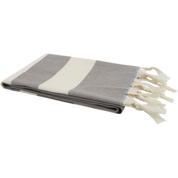 La serviette de hammam Anders offre un confort luxueux et des dimensions généreuses (147 x 75,5 cm), garantissant une couverture suffisante, que vous vous prélassiez au bord de la piscine ou que vous profitiez d'une journée à la plage. La serviette est ornée d'élégants pompons aux deux extrémités. Elle est composée de 30 % de coton, 35 % de coton recyclé certifié GRS et 35 % de polyester recyclé certifié GRS, 180 g/m².