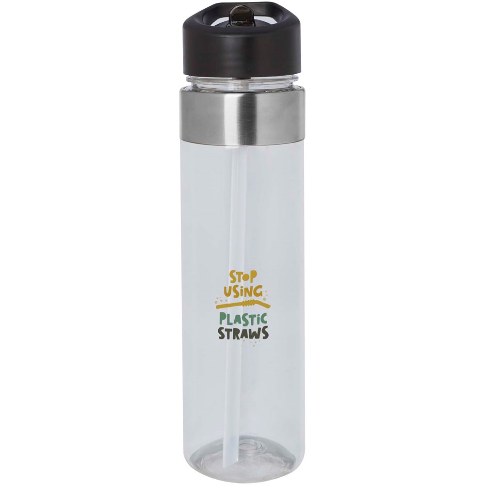 Bouteille d'eau d'une capacité de 650 ml avec un bec verseur pratique pour boire jusqu'à plus soif. Fabriquée en Tritan durable avec des détails en acier inoxydable sur le dessus de la bouteille.