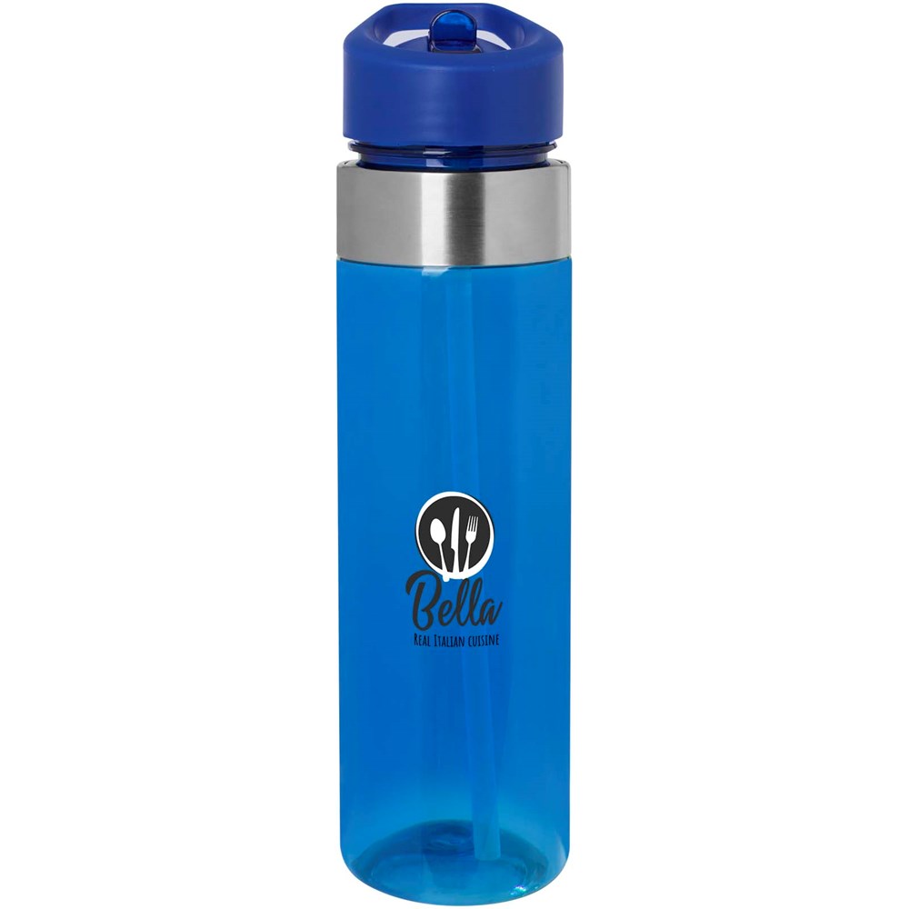 Bouteille d'eau d'une capacité de 650 ml avec un bec verseur pratique pour boire jusqu'à plus soif. Fabriquée en Tritan durable avec des détails en acier inoxydable sur le dessus de la bouteille.