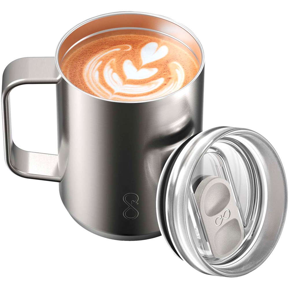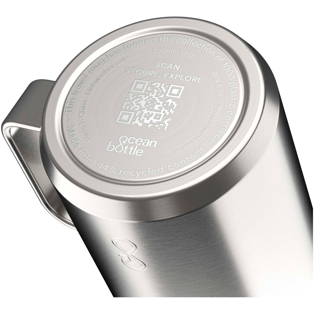 Le mug de voyage Ocean Bottle de 350 ml est doté d’une double paroi qui permet de garder les boissons chaudes jusqu’à quatre heures et froides jusqu’à dix heures. La poignée ergonomique permet de l’attacher à des sacs ou à d’autres objets pour optimiser l’espace de rangement et la capacité de transport. Chaque mug de voyage est entièrement neutre en carbone et permet la collecte de 1 000 bouteilles en plastique pour améliorer les moyens de subsistance dans les communautés côtières. Le mug est fabriqué à partir de matériaux recyclés, dont 90 % d’acier inoxydable recyclé. Livré dans un coffret cadeau en carton recyclé provenant de sources responsables.