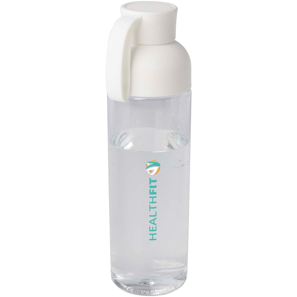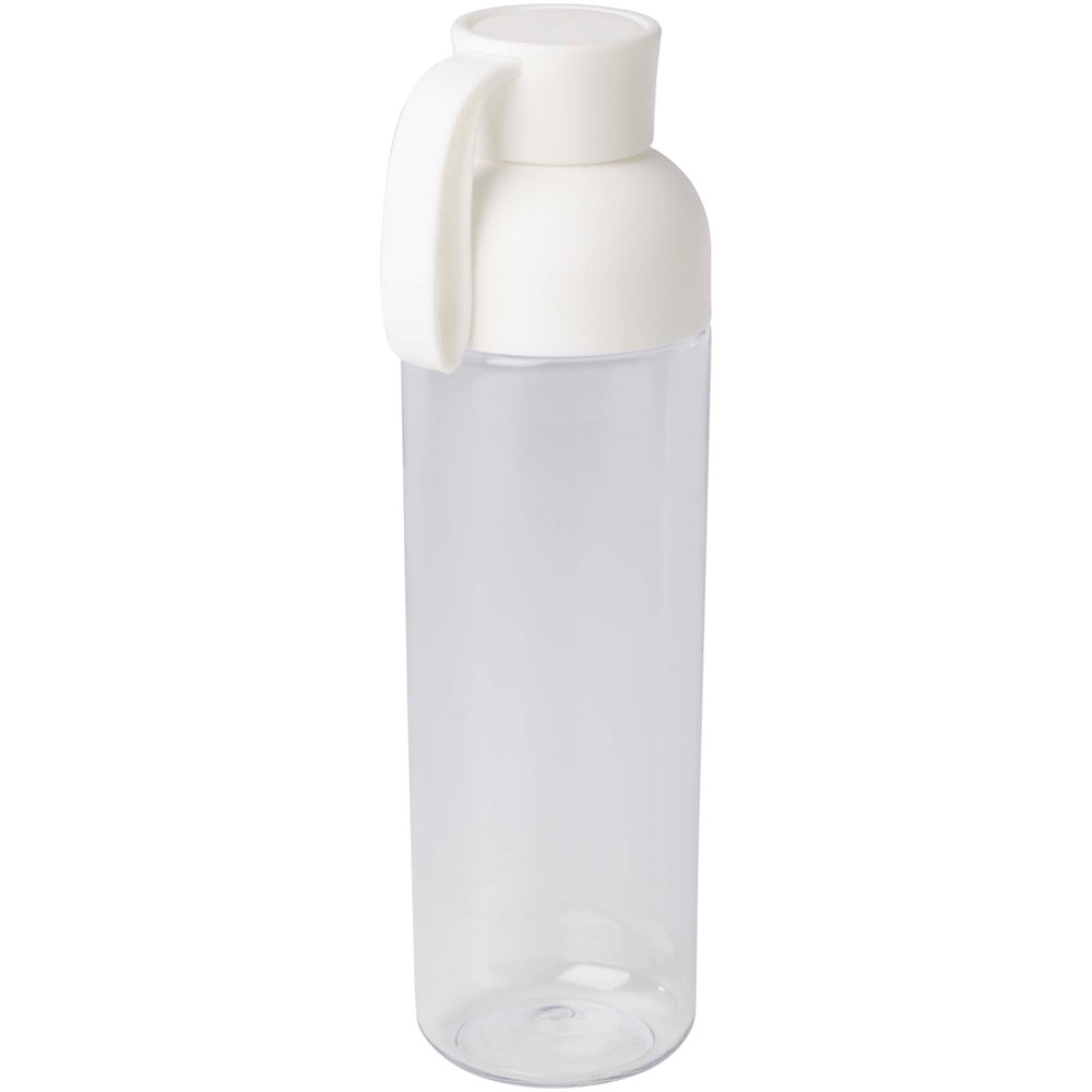 La bouteille d'eau Illuminate RPET est fabriquée à partir de plastique recyclé et dispose d'une poignée en silicone confortable pour faciliter le transport. D'une capacité de 600 ml, elle est conçue pour s'insérer facilement dans la poche latérale d'un sac à dos, ainsi que dans la plupart des porte-gobelets de voiture. La construction en deux parties facilite le nettoyage. Sans BPA. Certifié EFSA (European Food Safe Authority).