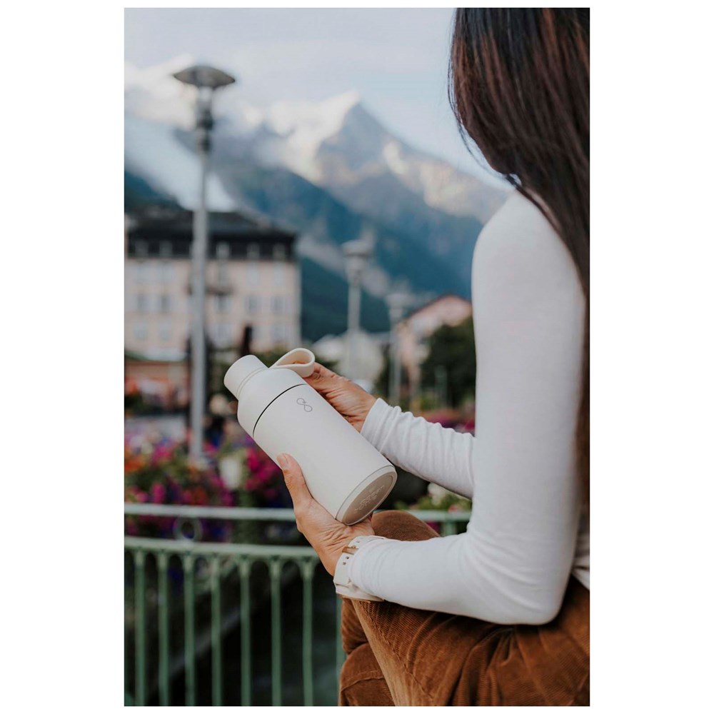 La bouteille Ocean Bottle de 750 ml est avec isolation par le vide pour que les boissons restent chaudes pendant 6 heures et froides pendant 18 heures. Chaque bouteille Ocean Bottle est entièrement neutre en carbone et permet de financer la collecte de 1 000 bouteilles en plastique pour améliorer les moyens de subsistance dans les communautés côtières. La bouteille contient de l'acier inoxydable recyclé et du plastique recyclé provenant des zones côtières et est dotée d'une puce intelligente NFC permettant de collecter plus de plastique à chaque recharge. La double ouverture facilite le nettoyage et le remplissage de la bouteille, et le couvercle anti-fuites a une boucle de transport facile. La bouteille passe au lave-vaisselle et ne contient pas de BPA. Livré dans un coffret cadeau en carton recyclé provenant de sources responsables.