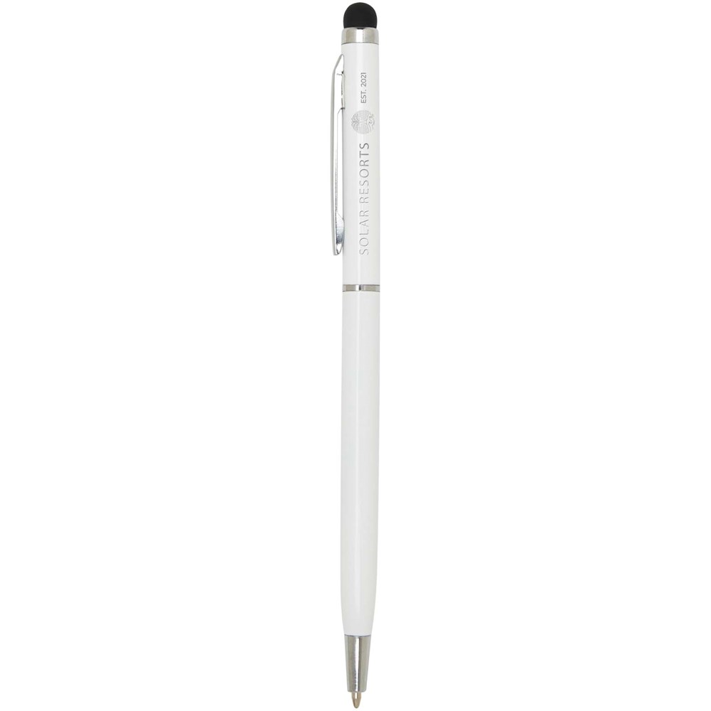 Cet ensemble de stylo bille et stylet polyvalent est fabriqué en aluminium durable. Le stylo permet une écriture fluide et le stylet intégré est parfait pour une navigation précise sur les écrans tactiles. Couleur de l'encre : Bleue. Longueur d'écriture : 1000 mètres. Taille de la plume : 1,0 mm.