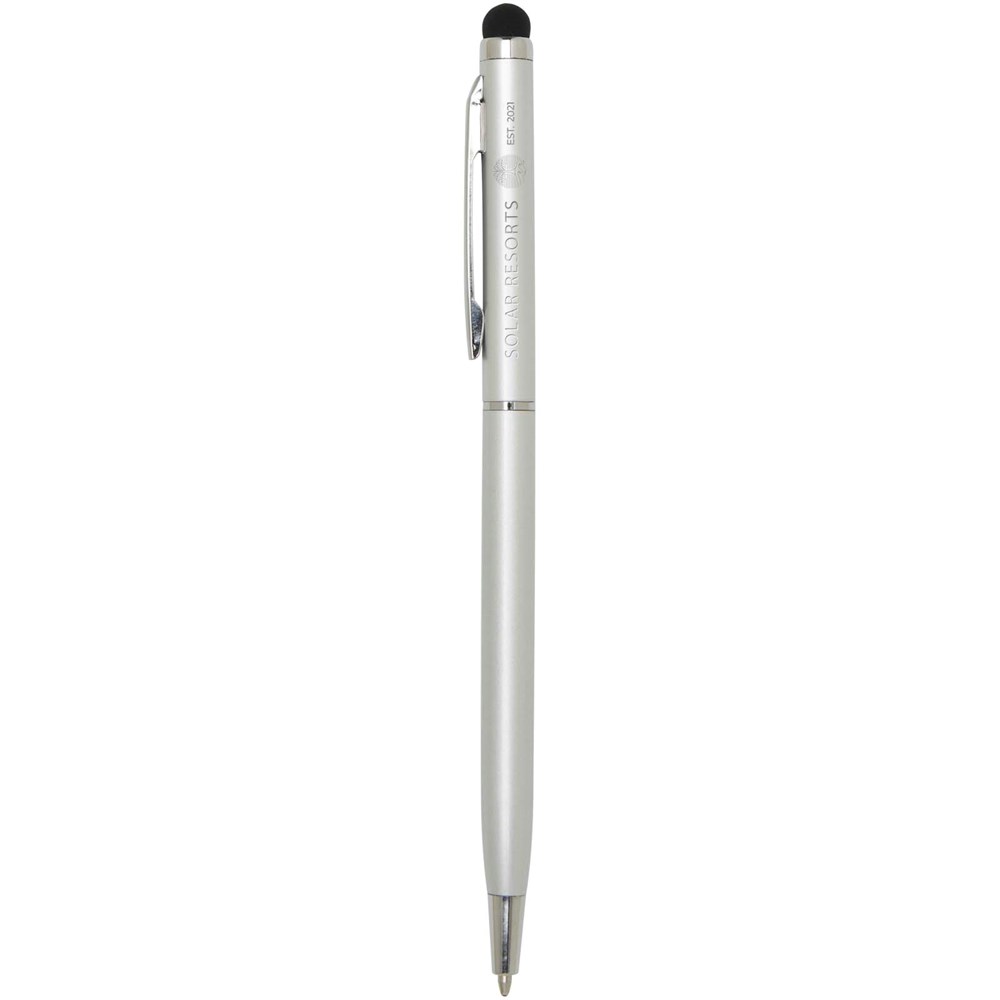 Cet ensemble de stylo bille et stylet polyvalent est fabriqué en aluminium durable. Le stylo permet une écriture fluide et le stylet intégré est parfait pour une navigation précise sur les écrans tactiles. Couleur de l'encre : Bleue. Longueur d'écriture : 1000 mètres. Taille de la plume : 1,0 mm.
