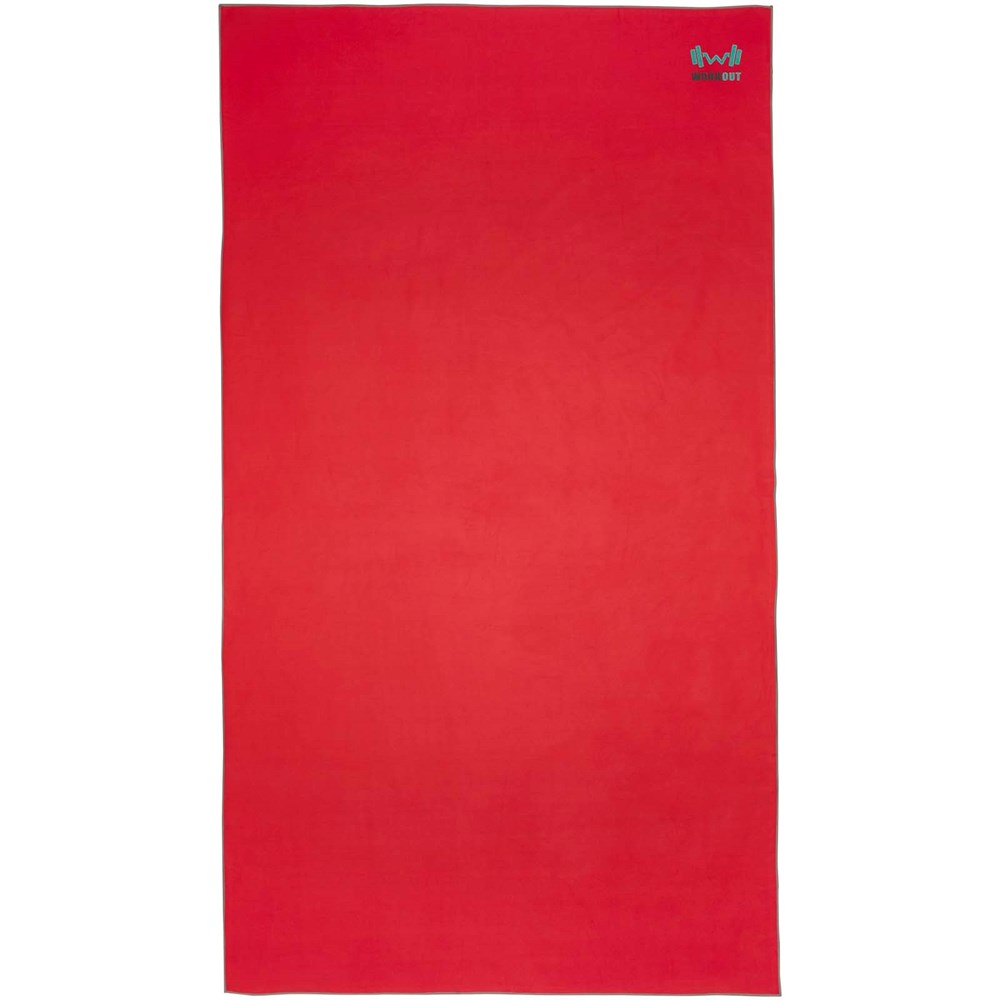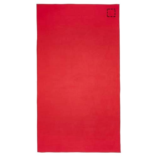 La serviette de sport Pieter absorbe très bien, est légère, sèche rapidement et le tissu est durable et extrêmement doux. Lorsque la serviette est pliée et fixée à l'aide de l'élastique, elle est réduite à une petite taille, ce qui permet de l'emmener à la salle de sport, à la piscine, ou de l'utiliser en randonnée ou en camping. D'une taille de 180 x 100 cm, la serviette est composée à 90 % de polyester recyclé certifié GRS et à 10 % de nylon. Elle peut être lavée en machine à 40 °C. Elle est livrée avec une pochette de rangement (25 x 8,5 cm) en plastique PET recyclé, qui offre une surface idéale pour l'impression d'un logo.