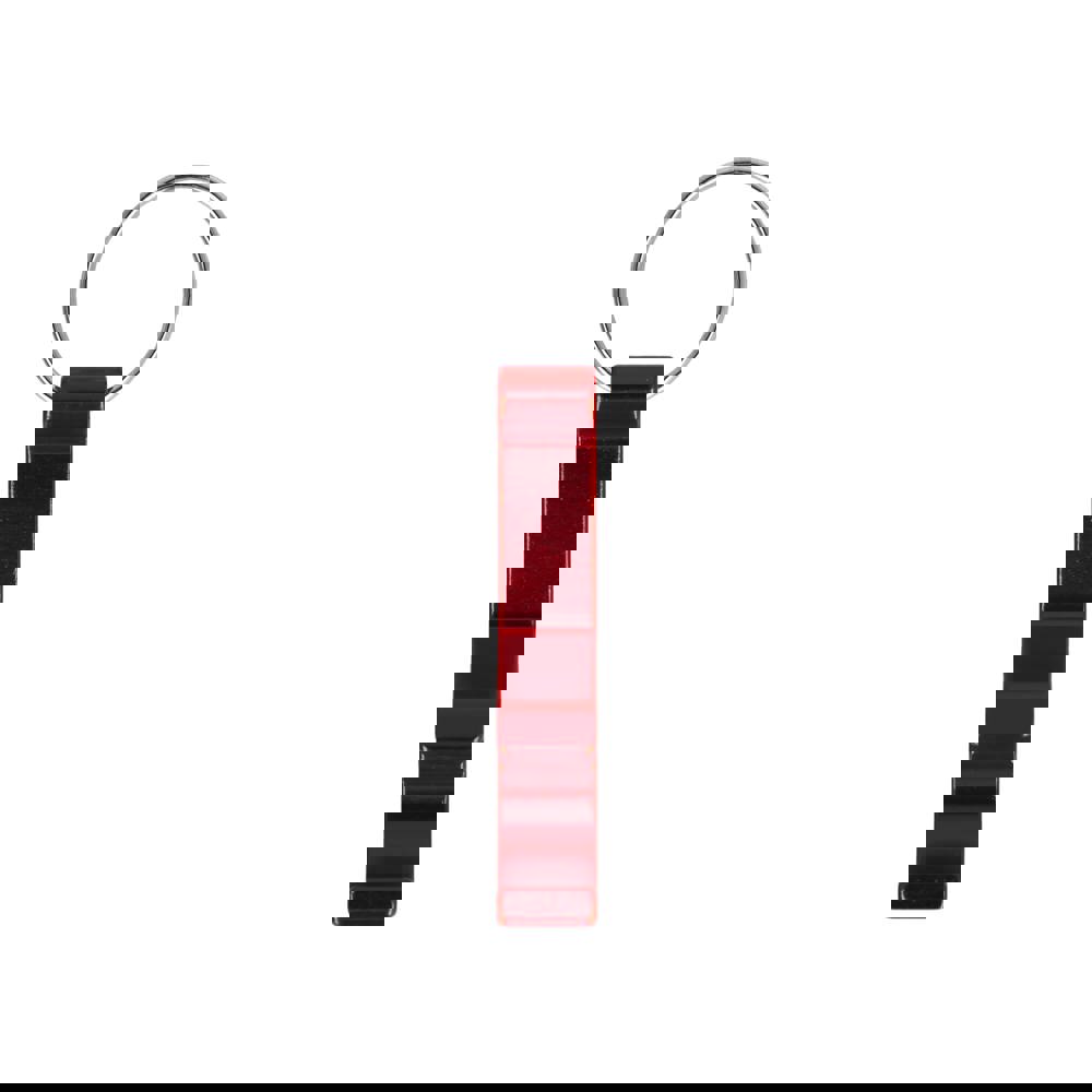 Porte-clés en aluminium avec décapsuleur et ouvre-boîte. Léger et durable, il est idéal pour un usage quotidien.