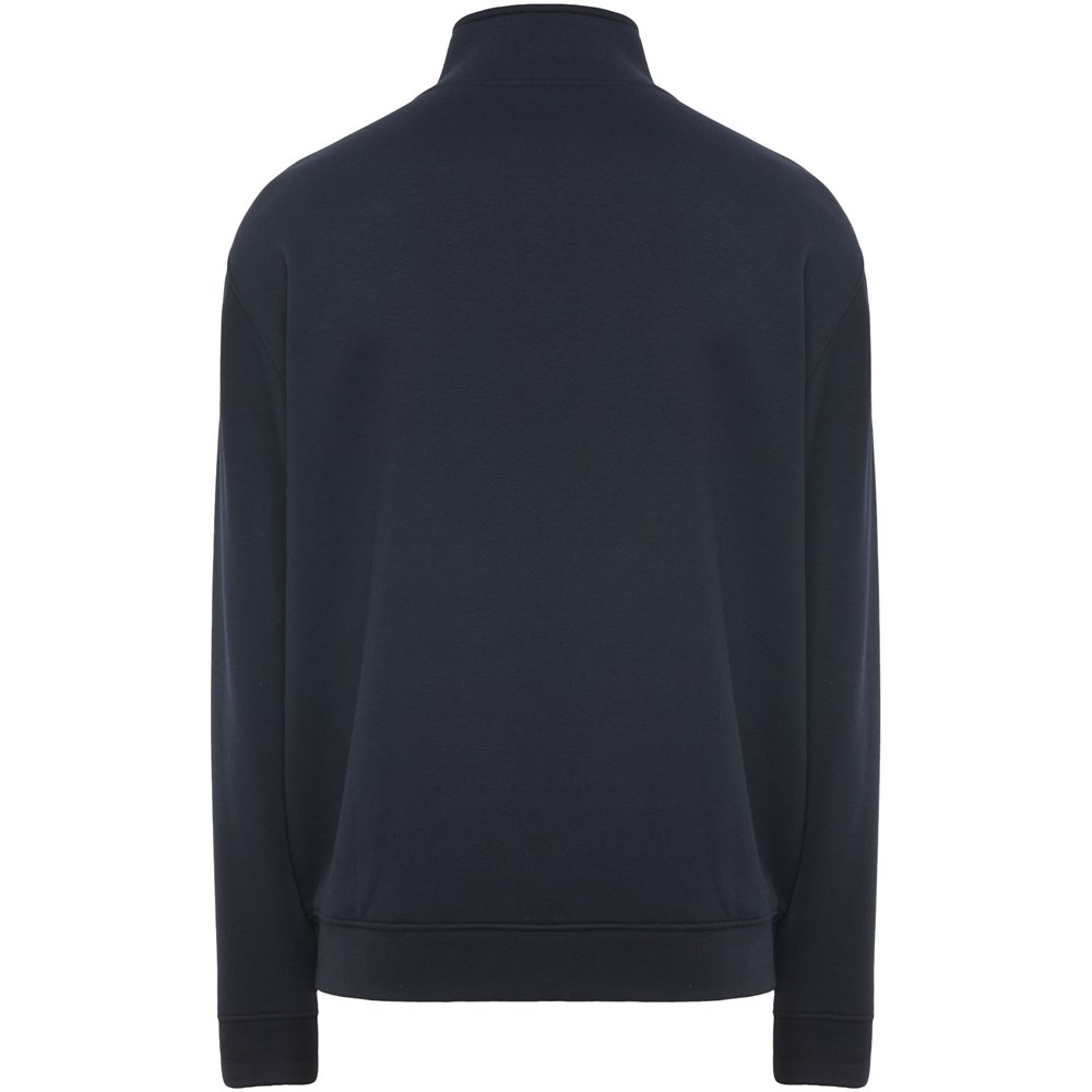 Pull col montant avec fermeture zippée assortie. Col intérieur assorti avec coutures recouvertes renforcées. Tissu côtelé 1x1 aux poignets et à la taille. Le mannequin Homme mesure 185 cm et porte la taille L, le mannequin Femme mesure 168 cm et porte la taille S.