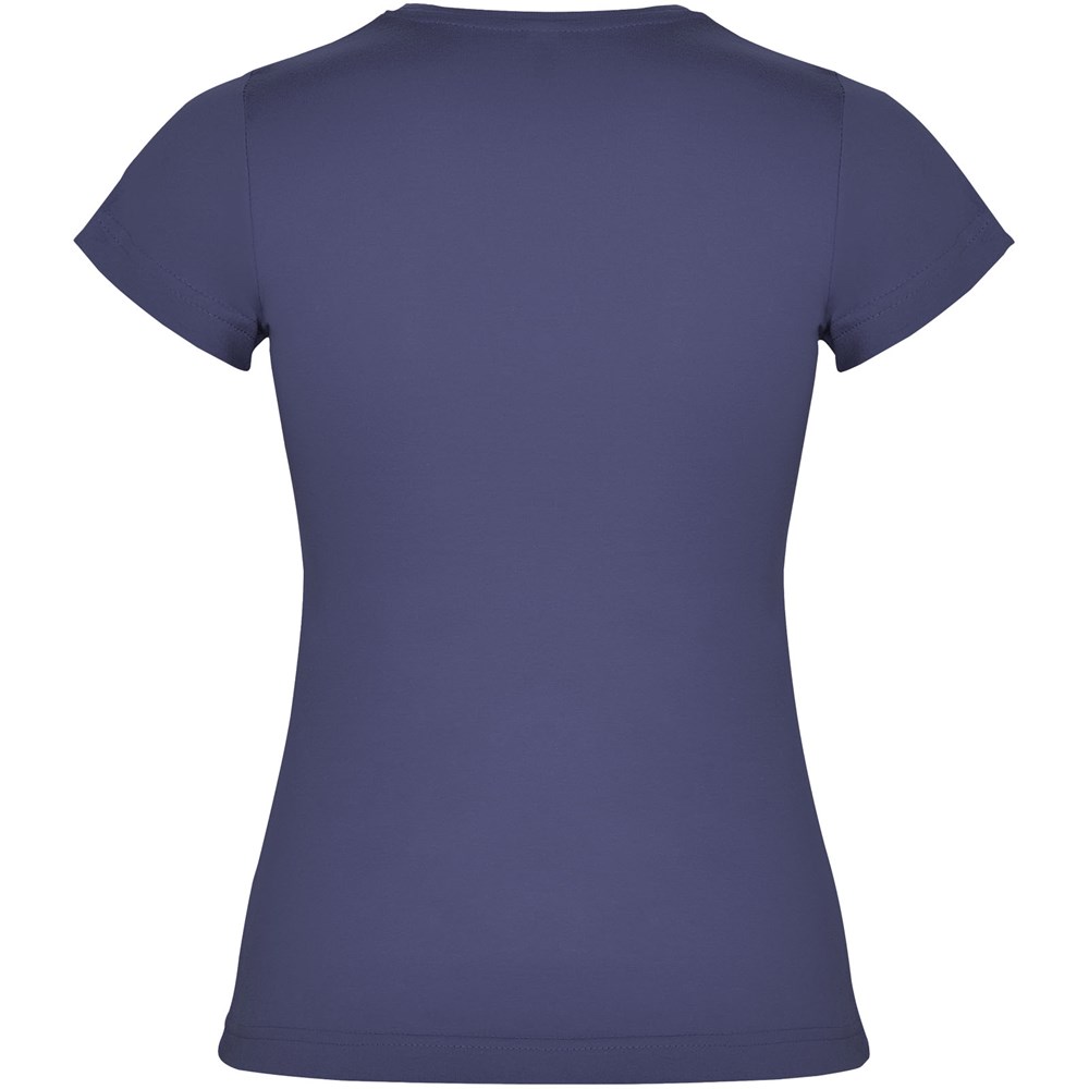 T-shirt ajusté à manches courtes. Col rond en côte 1x1 double épaisseur et coutures recouvertes d'épaule à épaule. Coutures latérales. T-shirt disponible en 21 couleurs. Étiquette détachable. Le mannequin mesure 168 cm et porte la taille S.