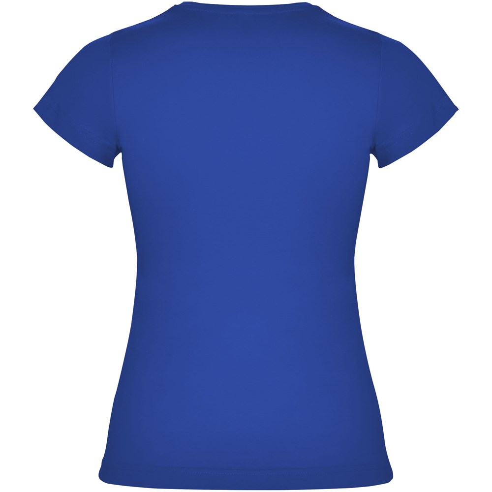 T-shirt ajusté à manches courtes. Col rond en côte 1x1 double épaisseur et coutures recouvertes d'épaule à épaule. Coutures latérales. T-shirt disponible en 21 couleurs. Étiquette détachable. Le mannequin mesure 168 cm et porte la taille S.
