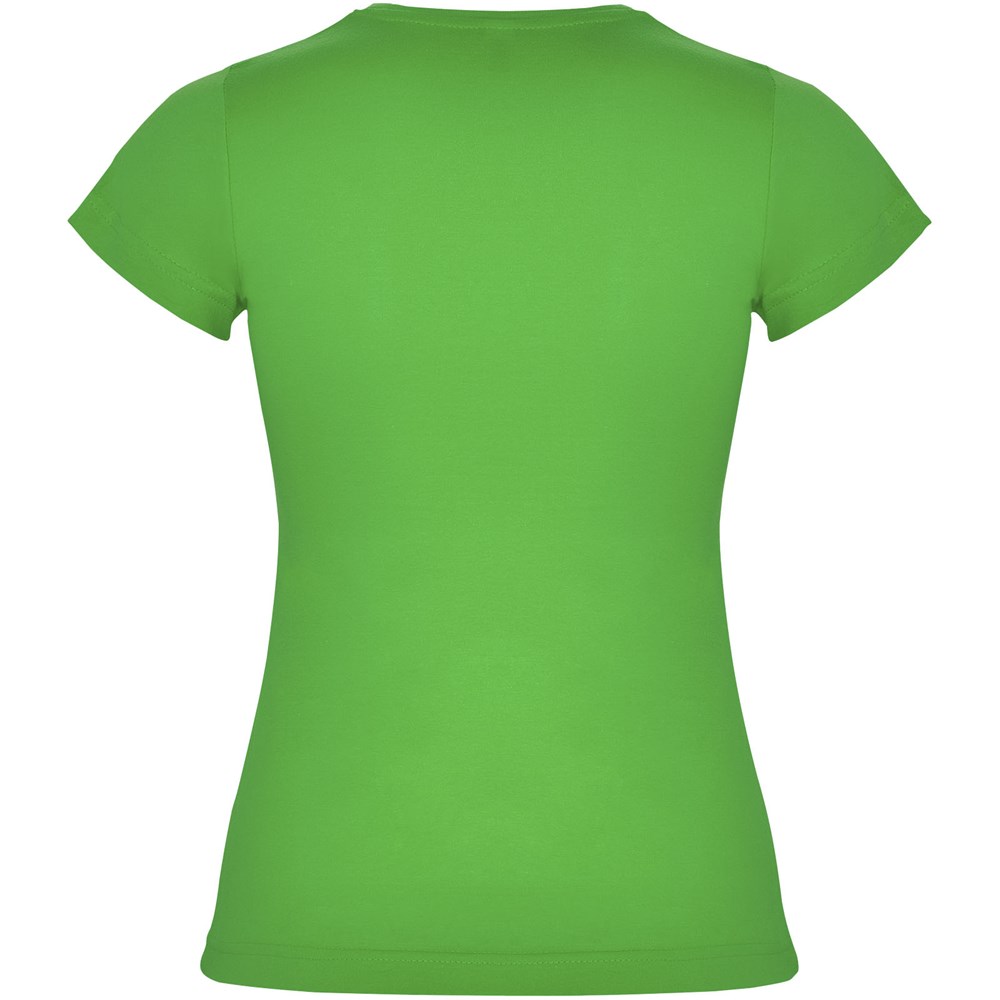 T-shirt ajusté à manches courtes. Col rond en côte 1x1 double épaisseur et coutures recouvertes d'épaule à épaule. Coutures latérales. T-shirt disponible en 21 couleurs. Étiquette détachable. Le mannequin mesure 168 cm et porte la taille S.