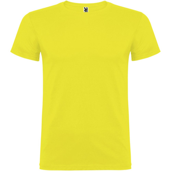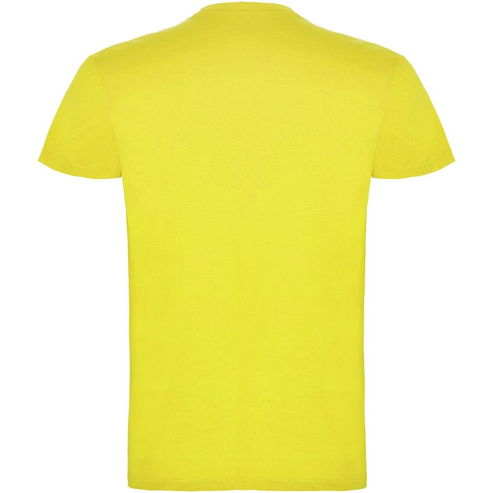 T-shirt à manches courtes avec col rond double épaisseur en élasthanne, confectionné en tissu tubulaire pour adultes. Coutures recouvertes renforcées au col. Étiquette détachable.Le mannequin mesure 190 cm et porte la taille L.