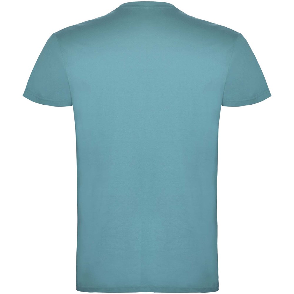 T-shirt à manches courtes avec col rond double épaisseur en élasthanne, confectionné en tissu tubulaire pour adultes. Coutures recouvertes renforcées au col. Étiquette détachable.Le mannequin mesure 190 cm et porte la taille L.