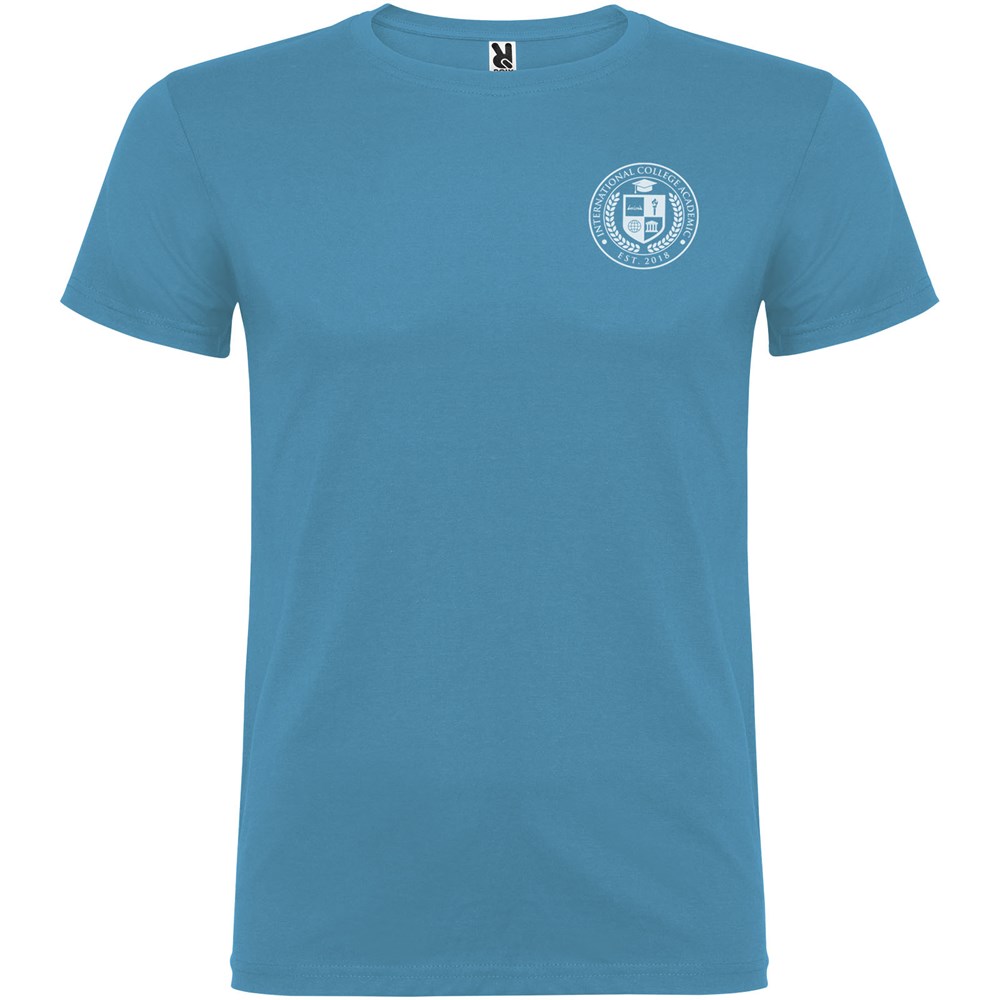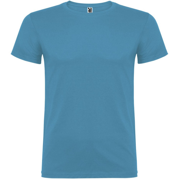 T-shirt à manches courtes avec col rond double épaisseur en élasthanne, confectionné en tissu tubulaire pour adultes. Coutures recouvertes renforcées au col. Étiquette détachable.Le mannequin mesure 190 cm et porte la taille L.