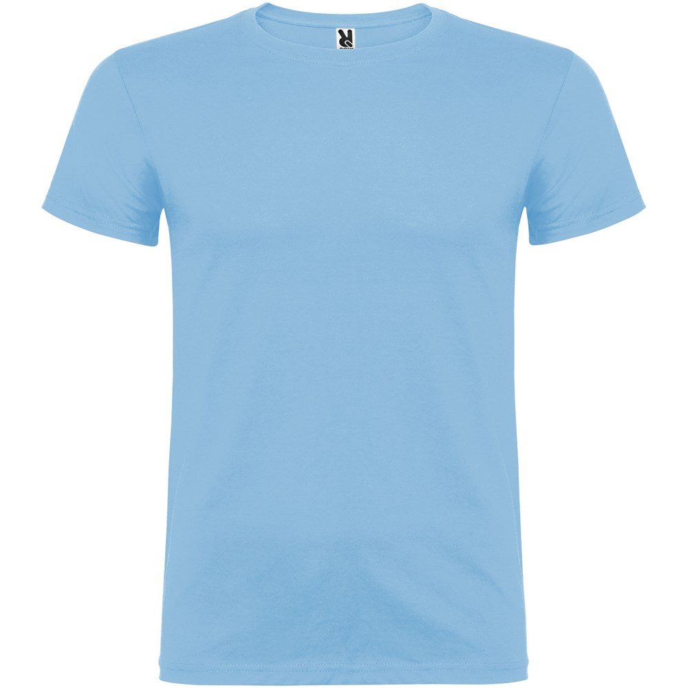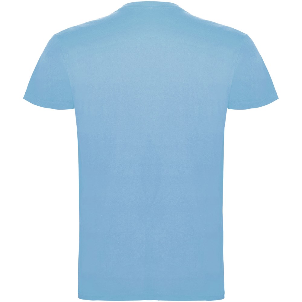 T-shirt à manches courtes avec col rond double épaisseur en élasthanne, confectionné en tissu tubulaire pour adultes. Coutures recouvertes renforcées au col. Étiquette détachable.Le mannequin mesure 190 cm et porte la taille L.