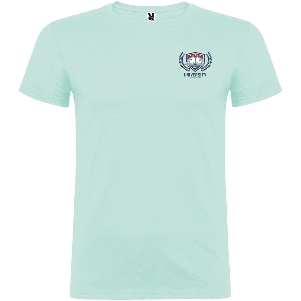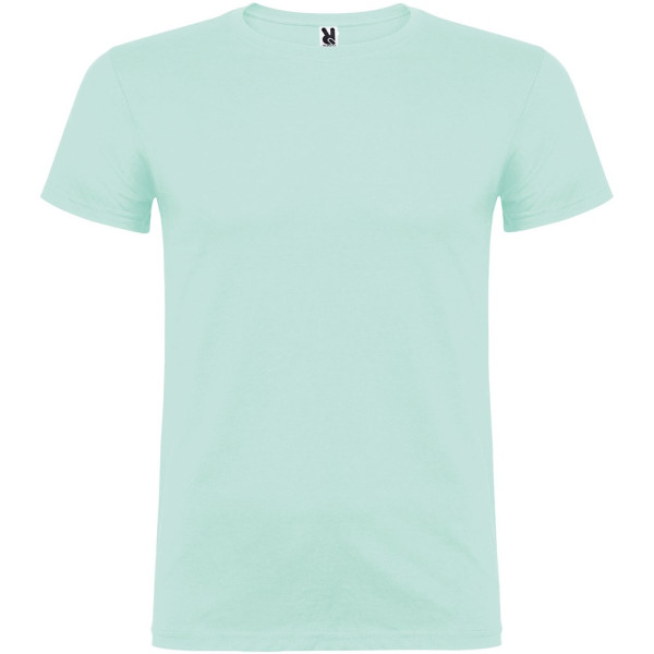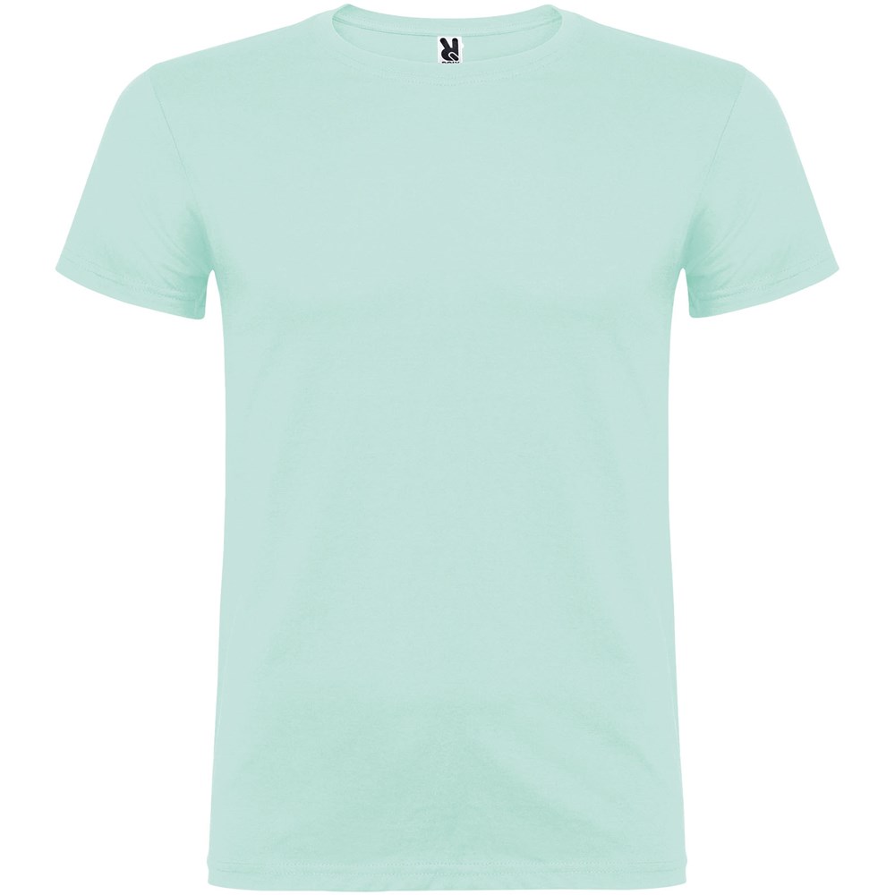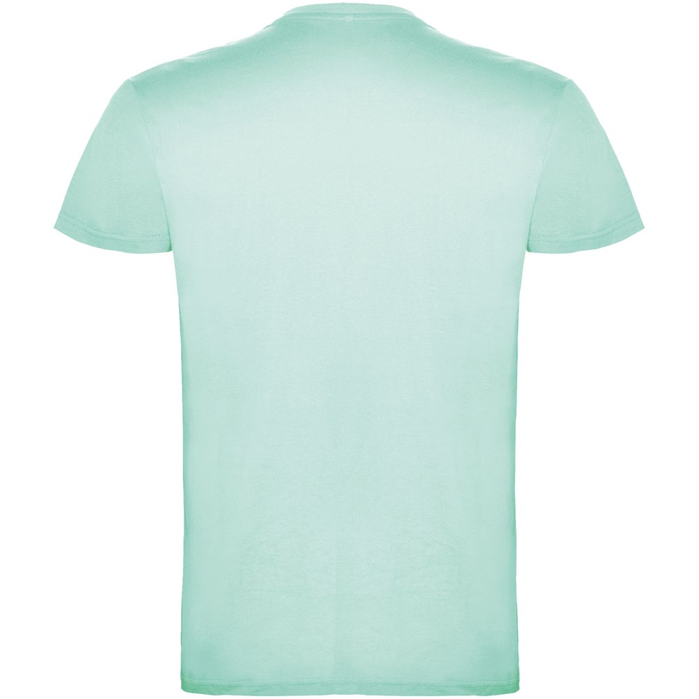 T-shirt à manches courtes avec col rond double épaisseur en élasthanne, confectionné en tissu tubulaire pour adultes. Coutures recouvertes renforcées au col. Étiquette détachable.Le mannequin mesure 190 cm et porte la taille L.