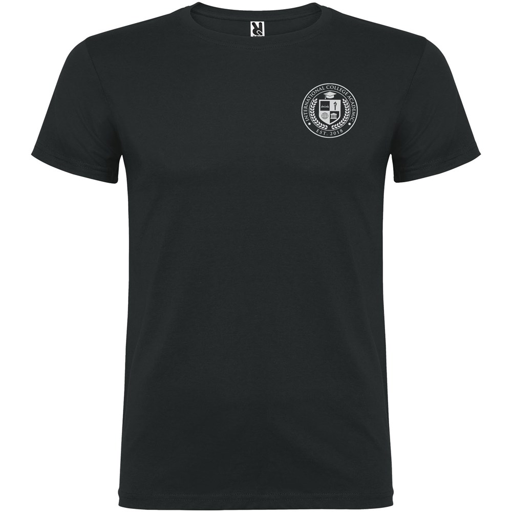 T-shirt à manches courtes avec col rond double épaisseur en élasthanne, confectionné en tissu tubulaire pour adultes. Coutures recouvertes renforcées au col. Étiquette détachable.Le mannequin mesure 190 cm et porte la taille L.